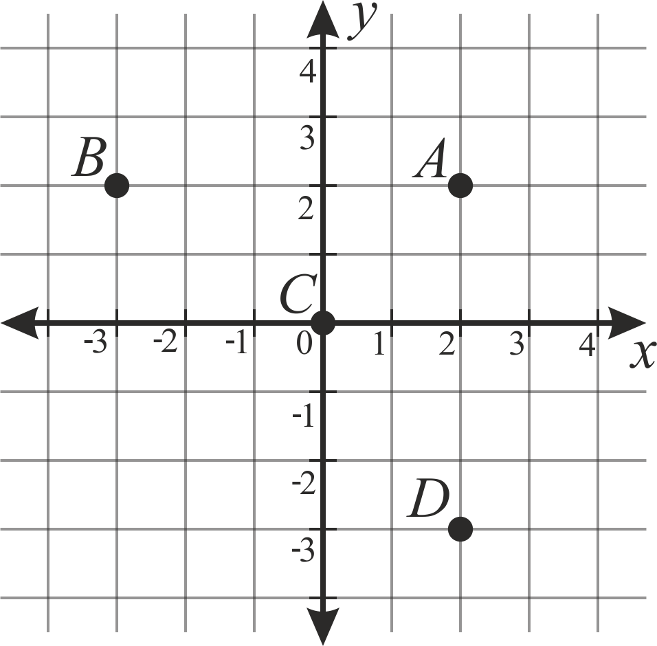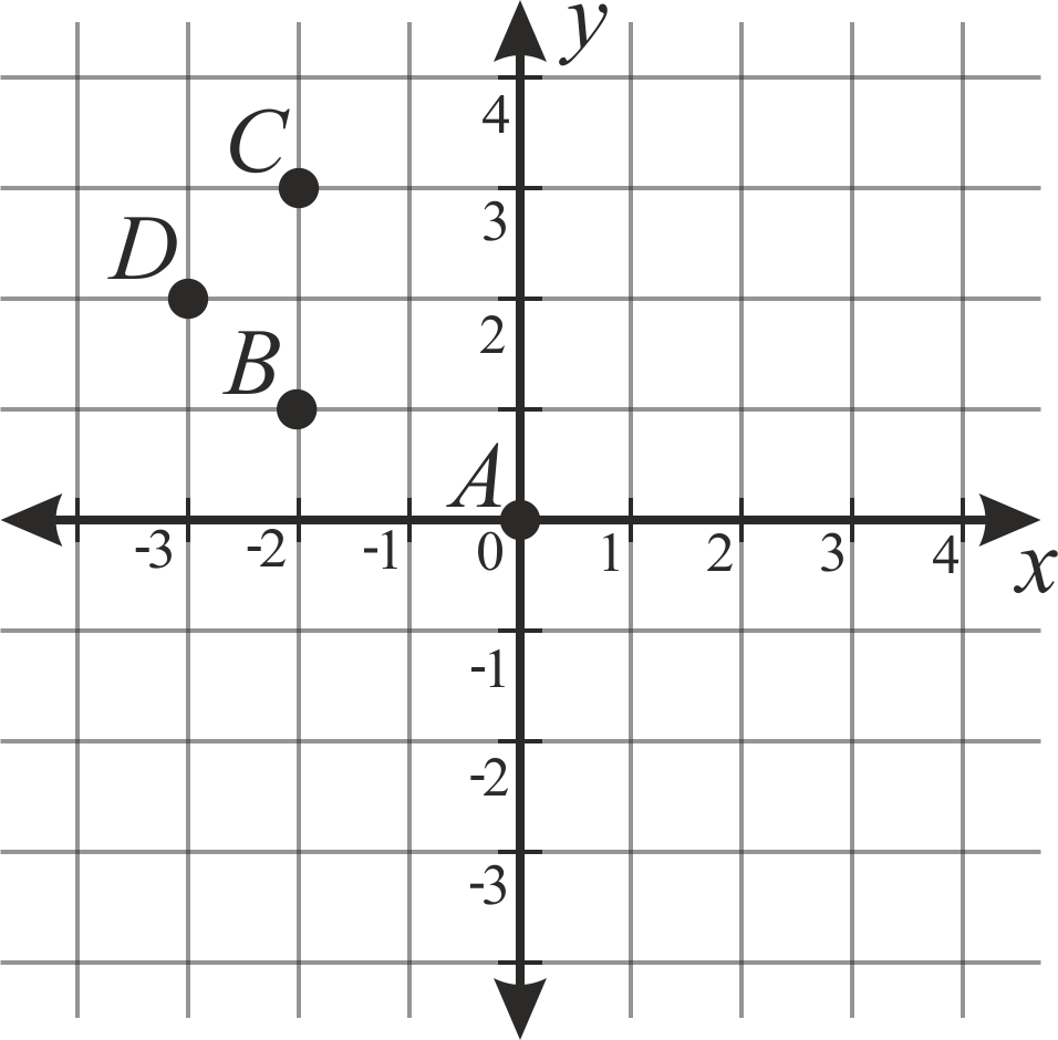 $D$ is 3 units to the left of and 2 units above the origin so point $D$ is $(-3,2)$