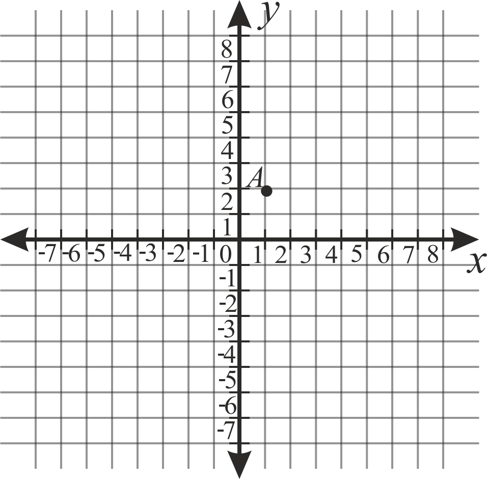 $A$ is 1 unit to the right of and 1 unit below the origin so point $A$ is $(1,-1)$