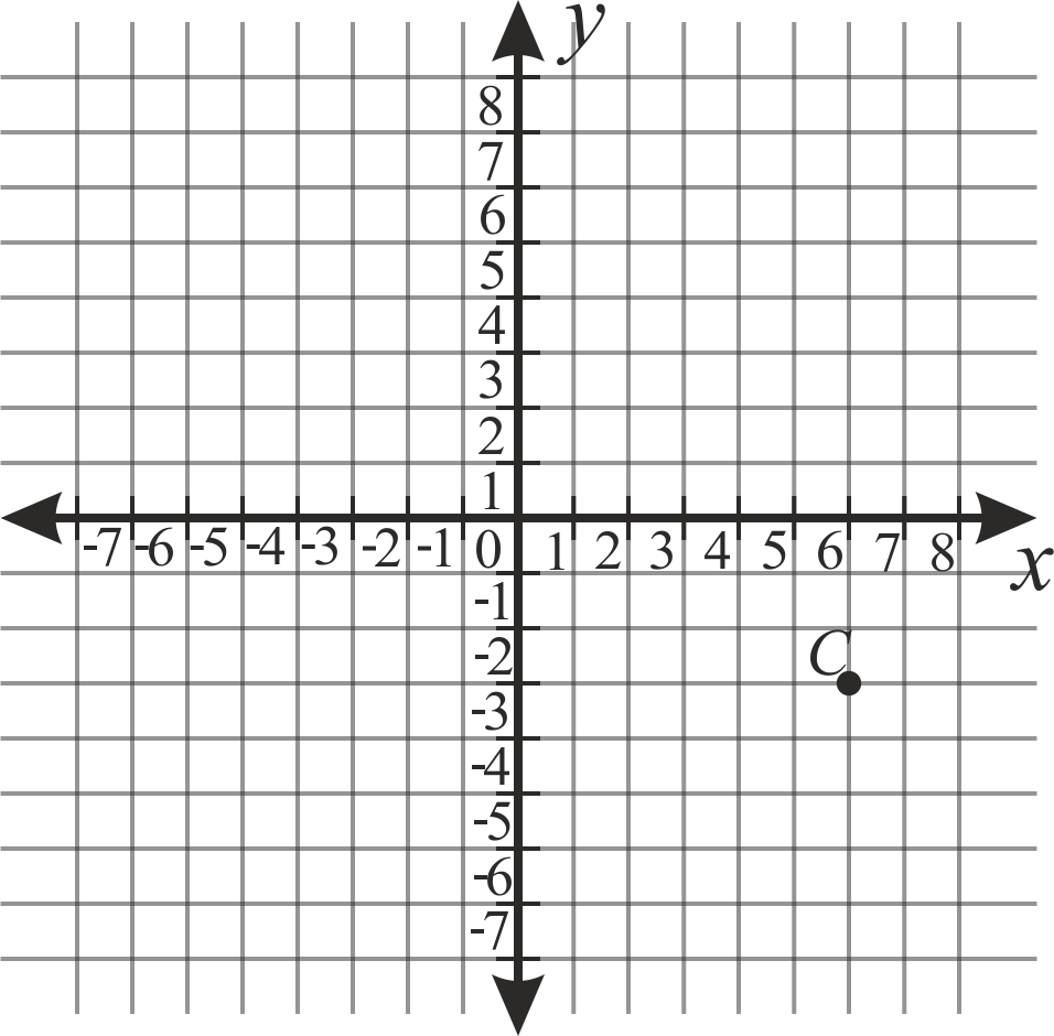 $C$ is at the origin (no units above or to the right of the origin) so point $C$ is $(0,0)$